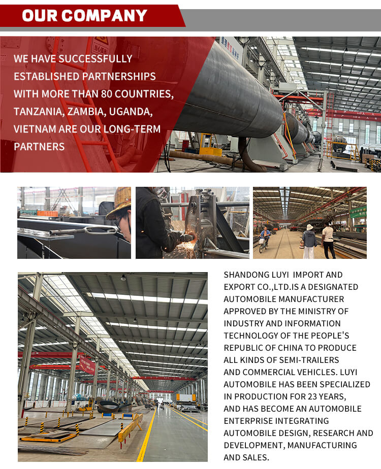 โรงงานของเราไม่เพียงแต่ผลิตรถแทรกเตอร์เท่านั้น แต่ยังรวมถึงรถดัมพ์, รถสปริงเกอร์, รถเครน, รถผสม, รถเทรเลอร์, รถเทรเลอร์ถัง, รถพ่วงพื้นต่ำ, รถพ่วงกำจัดฝุ่น ฯลฯ โรงงานของเรามีขนาดใหญ่และสามารถปรับแต่งผลิตภัณฑ์ที่แตกต่างกันตามความต้องการของลูกค้าที่แตกต่างกัน
