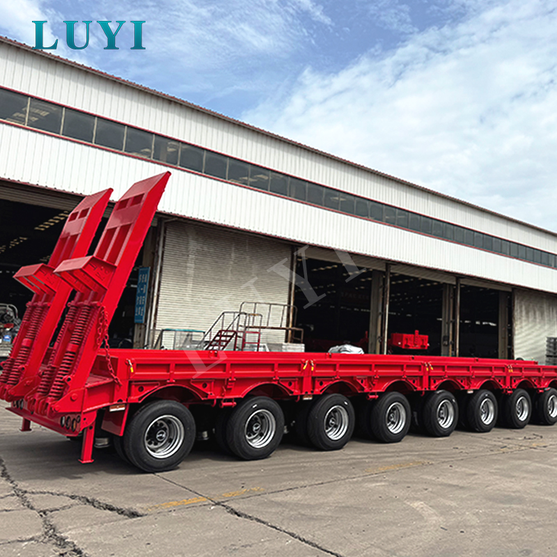 รถกึ่งพ่วงพื้นต่ำขนาด 10 เพลา 80-100 ตันจาก LUYI ซึ่งมีต้นกำเนิดในซานตง ประเทศจีน เป็นตัวเลือกที่ยอดเยี่ยมสำหรับการขนส่งสินค้าหนัก สร้างด้วยเหล็กคุณภาพสูง โดยมีสองขนาดให้เลือก: 1780030001500 มม. และ 1800030001500 มม. โดยมีความสามารถในการรับน้ำหนักสูงสุด 100 ตัน และการรับน้ำหนักปกติ 80 ตัน ซึ่งมีความสามารถในการรับน้ำหนักเป็นพิเศษ