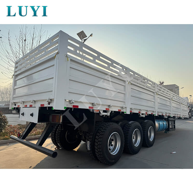 รถกึ่งพ่วงข้าง 3 เพลา 1.5 ม. ของ Luyi Vehicles มีต้นกำเนิดจากมณฑลซานตง ประเทศจีน เป็นรถกึ่งพ่วงบรรทุกสินค้าประสิทธิภาพสูงที่ออกแบบมาสำหรับการขนส่งงานหนัก สร้างด้วยเหล็กคุณภาพสูง โดยมีขนาดคงที่ 1250025001200 มม. และน้ำหนักบรรทุกที่มีประสิทธิภาพสูงสุด 80 ตัน ตอบสนองความต้องการในการขนส่งสินค้าหนักได้อย่างเต็มที่