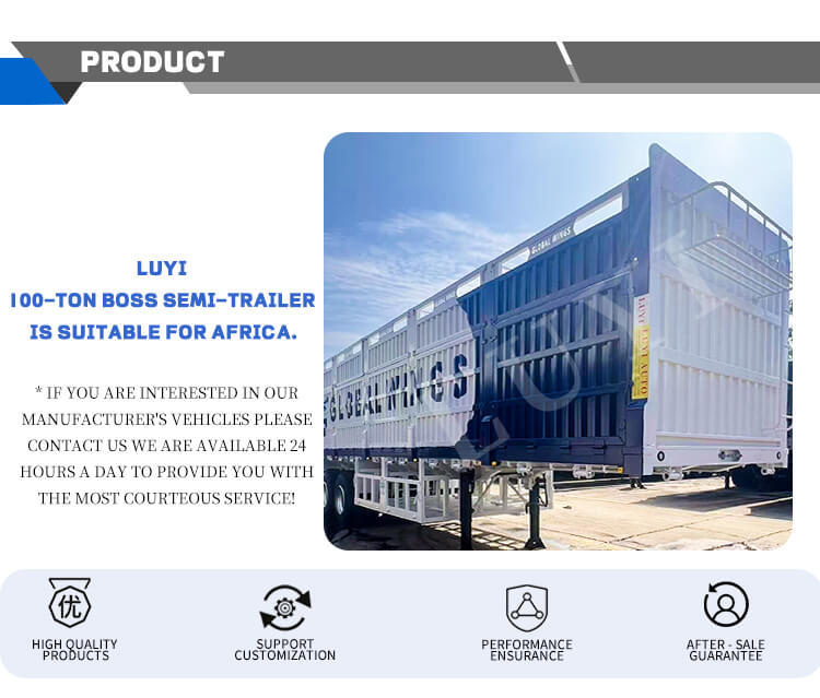LUYI รถกึ่งพ่วงผนังด้านข้างแบบถอดได้ 3 เพลา 100 ตันผลิตในซานตงประเทศจีนเป็นอุปกรณ์ใหม่ล่าสุดที่ออกแบบมาเป็นพิเศษสำหรับการขนส่งสินค้าจำนวนมากและตู้คอนเทนเนอร์ ตัวเครื่องทำจากเหล็กความแข็งแรงสูง โดยมีขนาด 12500x2500x1600มม. ความสามารถในการรับน้ำหนักสูงสุด 100 ตันเมื่อรวมกับโครงสร้างที่ถอดออกได้ สามารถปรับให้เข้ากับสถานการณ์การบรรทุกที่แตกต่างกันได้อย่างยืดหยุ่น และตอบสนองความต้องการในการขนส่งของสินค้าเทกองและตู้คอนเทนเนอร์ได้อย่างมีประสิทธิภาพ