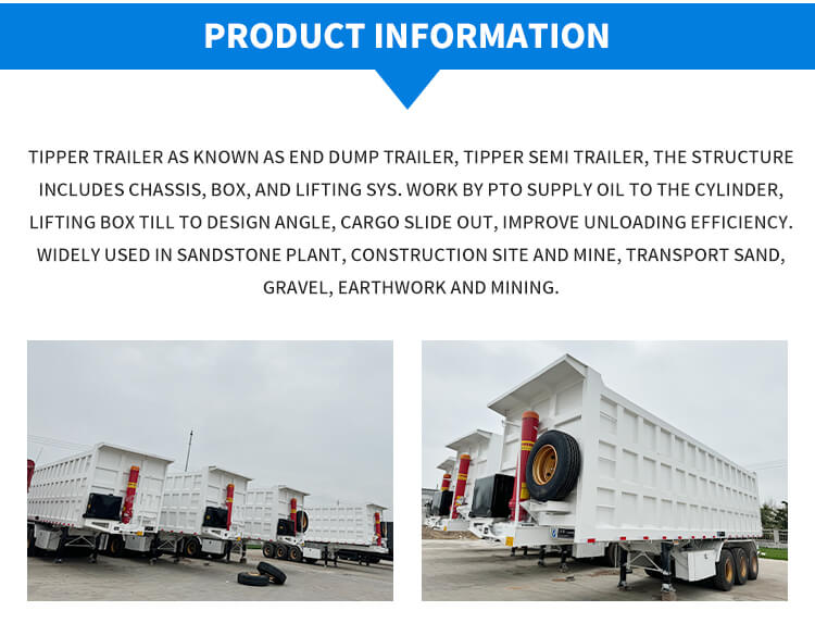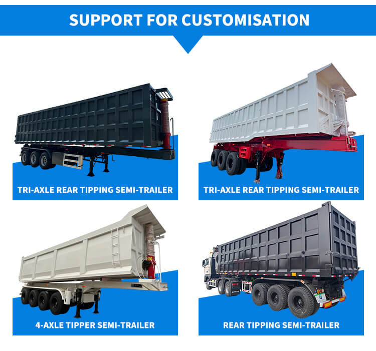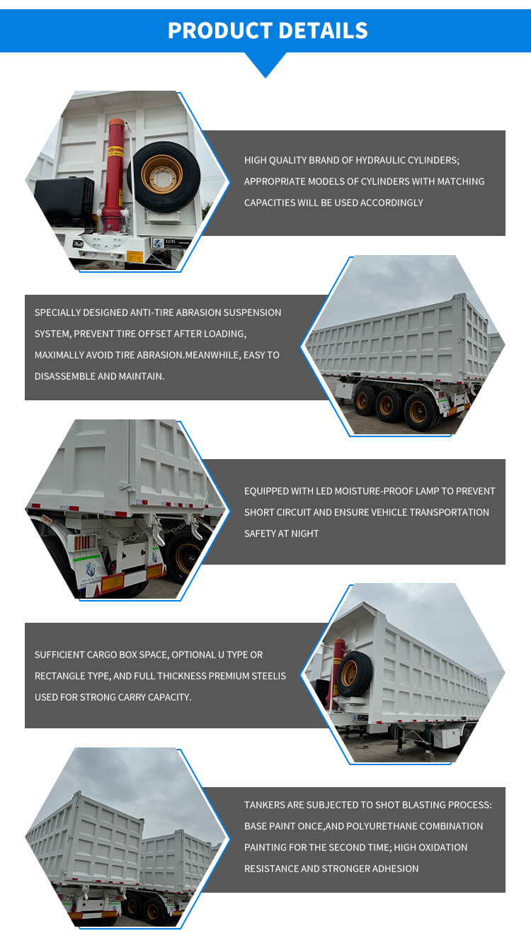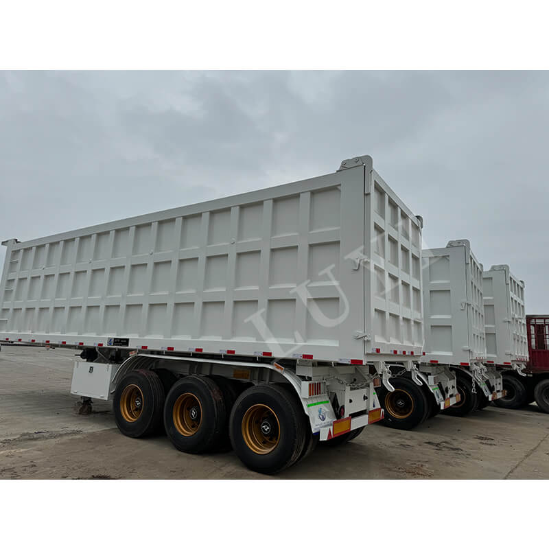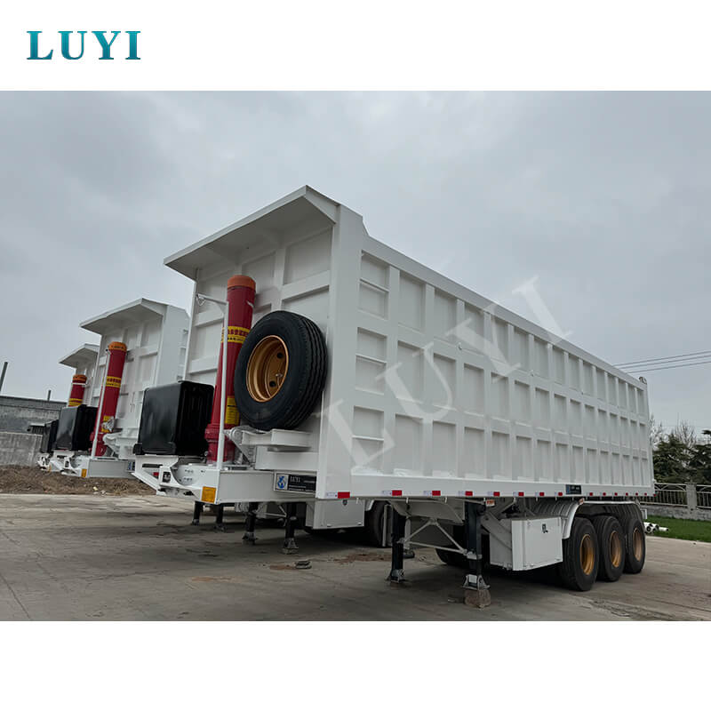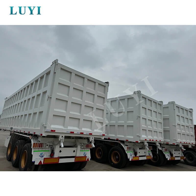 รถกึ่งพ่วงหลังไฮดรอลิก 3 เพลา 40-60 ตันจาก LUYI นี้เหมาะสำหรับการขนส่งทรายและกรวด มีต้นกำเนิดจากซานตง ประเทศจีน สร้างขึ้นด้วยเหล็กคุณภาพสูงเพื่อรองรับงานหนัก โดยสามารถรับน้ำหนักบรรทุกสูงสุดได้มากกว่า 30,000 กิโลกรัม