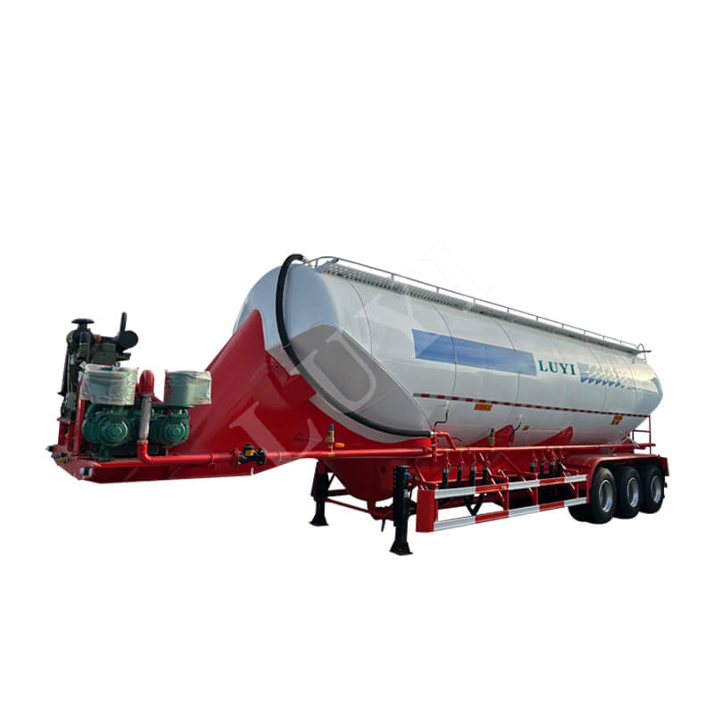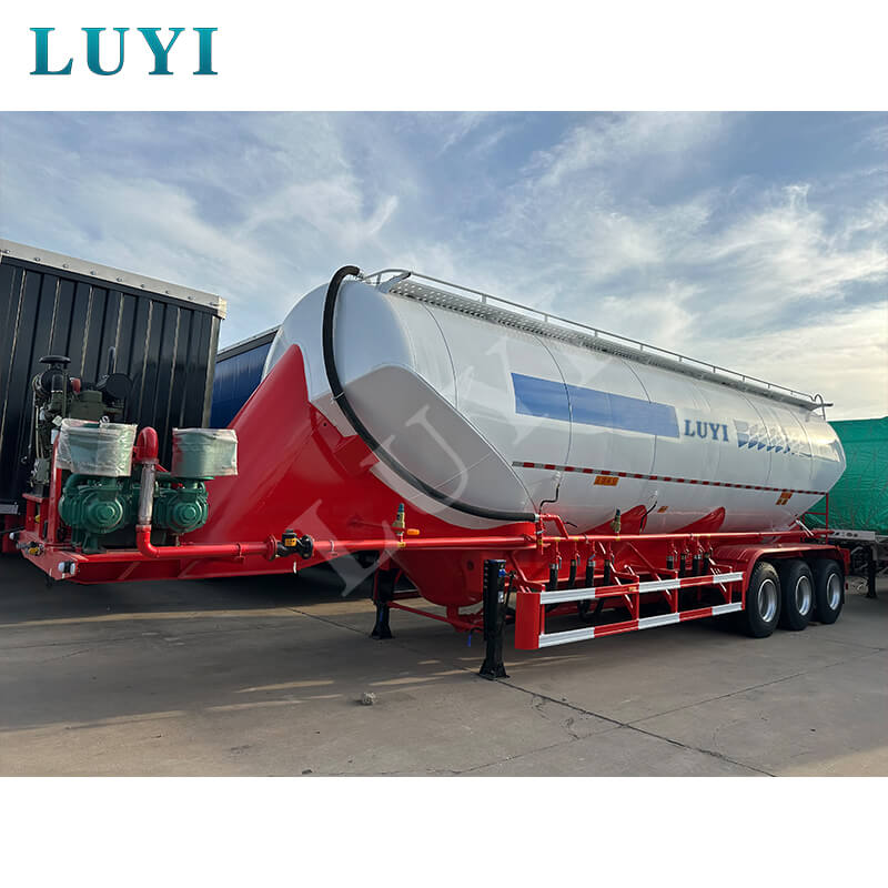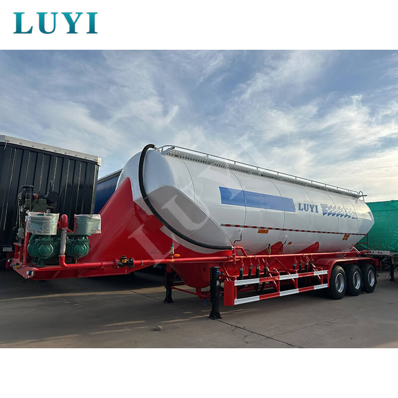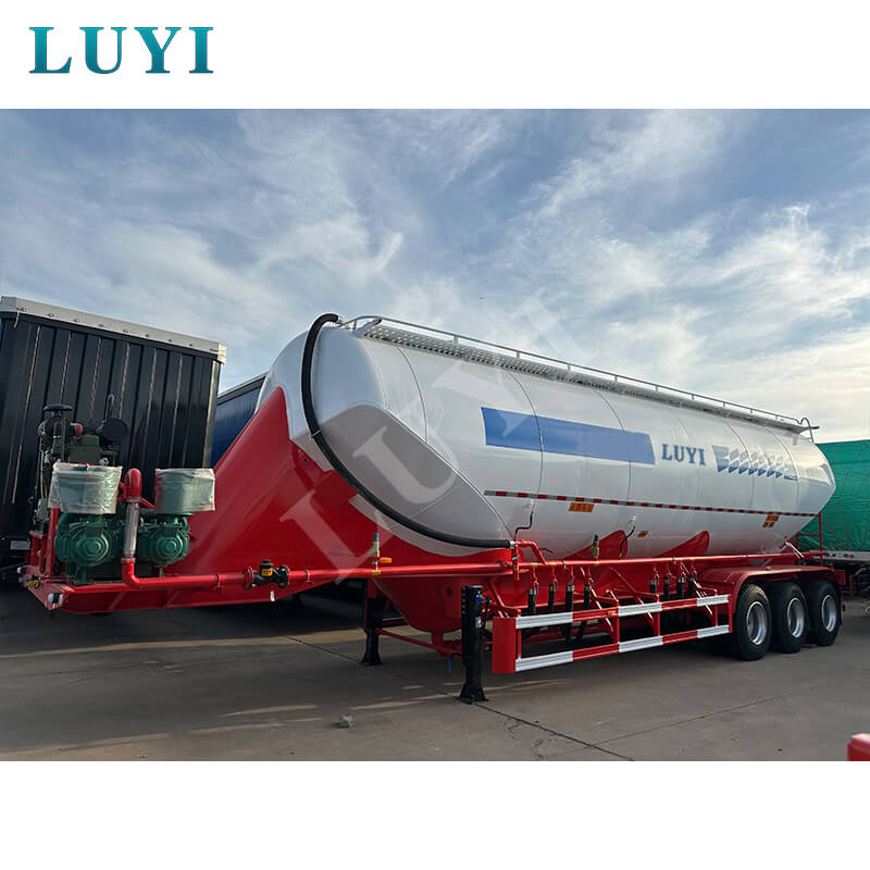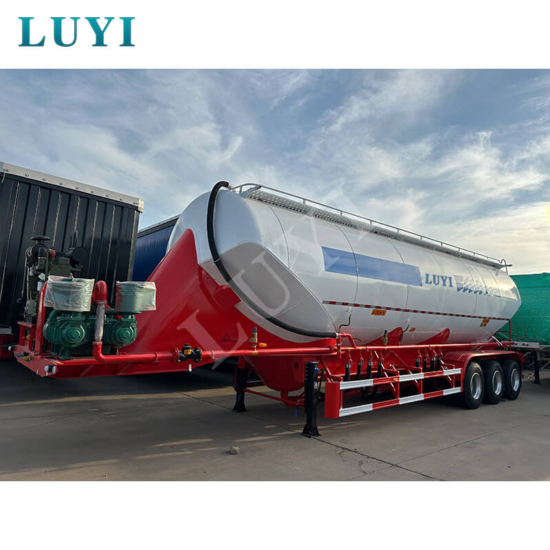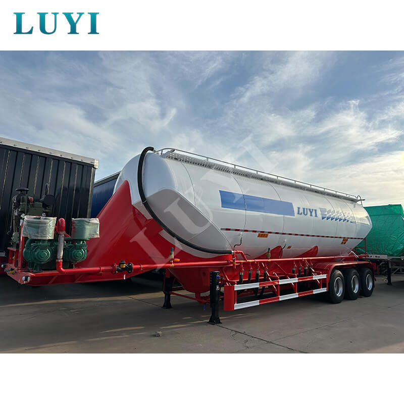 LUYI 3-Axle 50CBM Bulk V-Type Cement Tanker Semi-Trailer (หรือที่เรียกว่ารถบรรทุกถังผง) ซึ่งมีต้นกำเนิดจากมณฑลซานตงประเทศจีนเป็นรถกึ่งพ่วงที่ออกแบบมาเป็นพิเศษสำหรับการขนส่งผงปูนซีเมนต์จำนวนมาก เหมาะสำหรับสถานการณ์รถพ่วงบรรทุกและเป็นโซลูชั่นที่มีประสิทธิภาพสำหรับสาขาการขนส่งวัสดุก่อสร้าง