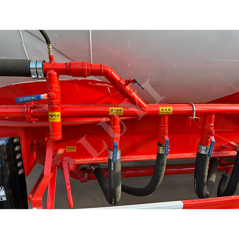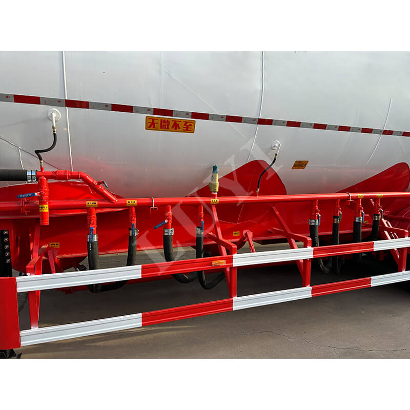 รถพ่วงทำจากเหล็กคุณภาพสูงทั้งหมด ใช้เหล็กช่อง 16# สำหรับคานด้านข้าง ซึ่งมีโครงสร้างที่มั่นคงและความสามารถในการรับน้ำหนักที่ดีเยี่ยม น้ำหนักบรรทุกที่มีประสิทธิภาพสูงสุดอยู่ที่ 80 ตัน และความสามารถในการบรรทุกอยู่ที่ 50 CBM ซึ่งสามารถตอบสนองความต้องการในการขนส่งผงปูนซีเมนต์จำนวนมากขนาดใหญ่ รถมี 3 เพลา จับคู่กับยาง 12R22.5 และขอบล้อ 9.00-22.5 ระบบกันสะเทือนใช้ระบบกันสะเทือนแบบถุงลม ซึ่งช่วยรักษาสมดุลในการขับขี่และการดูดซับแรงกระแทก ขารองรับเป็นข้อกำหนดมาตรฐาน 28 ตันเพื่อความปลอดภัยในการจอดรถ ที่น่าเชื่อถือกว่านั้นคือสินค้ามาพร้อมการรับประกัน 6 ปี ซึ่งให้ความคุ้มครองที่ครอบคลุมแก่การดำเนินการขนส่งของผู้ใช้ ตั้งแต่คุณภาพไปจนถึงบริการหลังการขาย