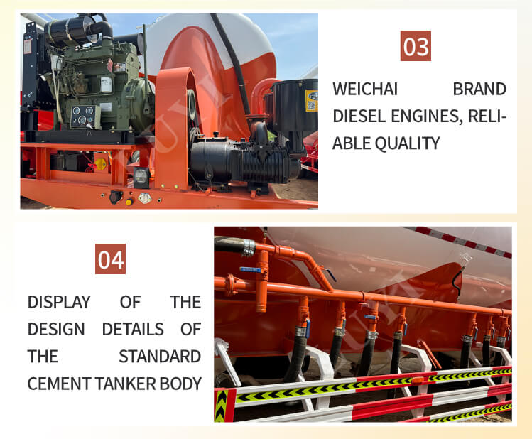 รถพ่วงทำจากเหล็กคุณภาพสูง ใช้เหล็กช่อง 16# สำหรับคานด้านข้าง ทำให้มั่นใจได้ถึงโครงสร้างที่แข็งแรงและทนทาน น้ำหนักบรรทุกที่มีประสิทธิภาพสูงสุดเกิน 30,000 กิโลกรัม และความสามารถในการบรรทุกอยู่ในช่วงตั้งแต่ 30 ตันถึง 60 ตัน ตอบสนองความต้องการของปริมาณการขนส่งที่แตกต่างกันได้อย่างง่ายดาย ติดตั้งโครงสร้าง 3 เพลา ยาง 12R22.5 และขอบล้อ 9.00-22.5 จับคู่กับระบบกันสะเทือนแบบถุงลม ช่วยให้ขับขี่ได้อย่างมั่นคงและปรับให้เข้ากับสภาพถนนต่างๆ อุปกรณ์ลงจอดมาตรฐานขนาด 28 ตันรับประกันการรองรับที่มั่นคงระหว่างการจอด ยิ่งไปกว่านั้น ยังมาพร้อมกับระยะเวลาการรับประกัน 6 ปี ช่วยลดความกังวลในการใช้งานอย่างครอบคลุม และให้การสนับสนุนอุปกรณ์ที่เชื่อถือได้และระยะยาวสำหรับการขนส่งผงปูนซีเมนต์จำนวนมาก
