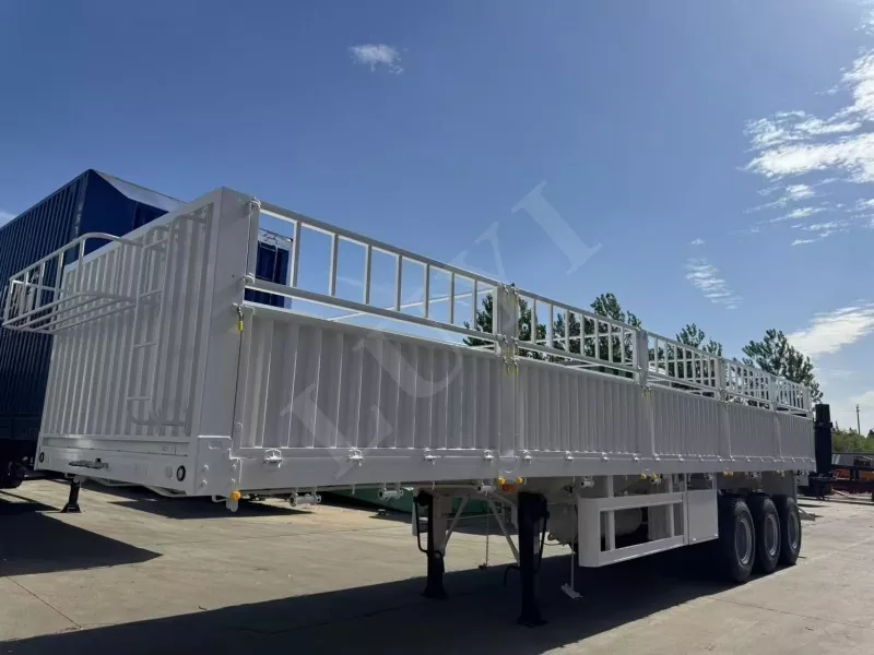 กึ่งพ่วงสีน้ำเงิน 3 เพลาของเรามีความยาว 12.5 เมตรและกว้าง 2.5 เมตร ความสูงของลำแสงยานพาหนะคือ 500 (มม.) แผ่นปีกบนคือ 20*200 (มม.) แผ่นปีกล่างคือ 20*200 (มม.) และเว็บคือ 12 (มม.) วัสดุที่ใช้: แผ่นแมงกานีส Q345B, I-Beam I-beam หนักและทนทาน, เชื่อมโดยกระบวนการเชื่อมอาร์คที่จมอยู่ใต้น้ำอัตโนมัติ ความสูงของ Siderail คือ 600 มม., 3x13t Guangdong Fuhua Brand หรือแบรนด์ BPW เราใช้ยาง 315/80R22.5, ระบบกันสะเทือนแบบกลไกสามเพลา, สปริงใบหนัก, Wabco ABS, jost outrighers และหมุดลาก, วาล์วรีเลย์ WABCO, วงจรไฟฟ้า 24V, ไฟหน้า LED, การออกแบบกันชนต่อต้านการชนกัน ยานพาหนะทั้งหมดใช้กระบวนการฉีดพ่นผงแบบพิเศษและพ่นแว็กซ์ก่อนออกจากโรงงานเพื่อความปลอดภัยในการขนส่งทางทะเล