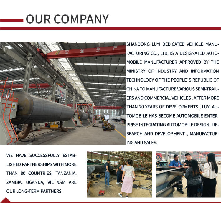 รถกึ่งพ่วงถังน้ำมัน LUYI เหล็กกล้าคาร์บอน 3 เพลาขนาด 40,000 ลิตรผลิตในมณฑลซานตงประเทศจีนเป็นรถกึ่งพ่วงรถบรรทุกที่มีประสิทธิภาพสำหรับการขนส่งเชื้อเพลิง สร้างขึ้นจากเหล็กกล้าคาร์บอน มีความแข็งแกร่งและทนทาน โดยมีน้ำหนักบรรทุกที่มีประสิทธิภาพสูงสุดมากกว่า 30,000 กิโลกรัม และความสามารถในการบรรทุกตั้งแต่ 20 ถึง 60 ลูกบาศก์เมตร ซึ่งสามารถตอบสนองความต้องการในการขนส่งเชื้อเพลิงที่หลากหลาย