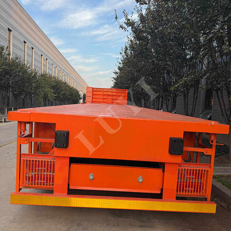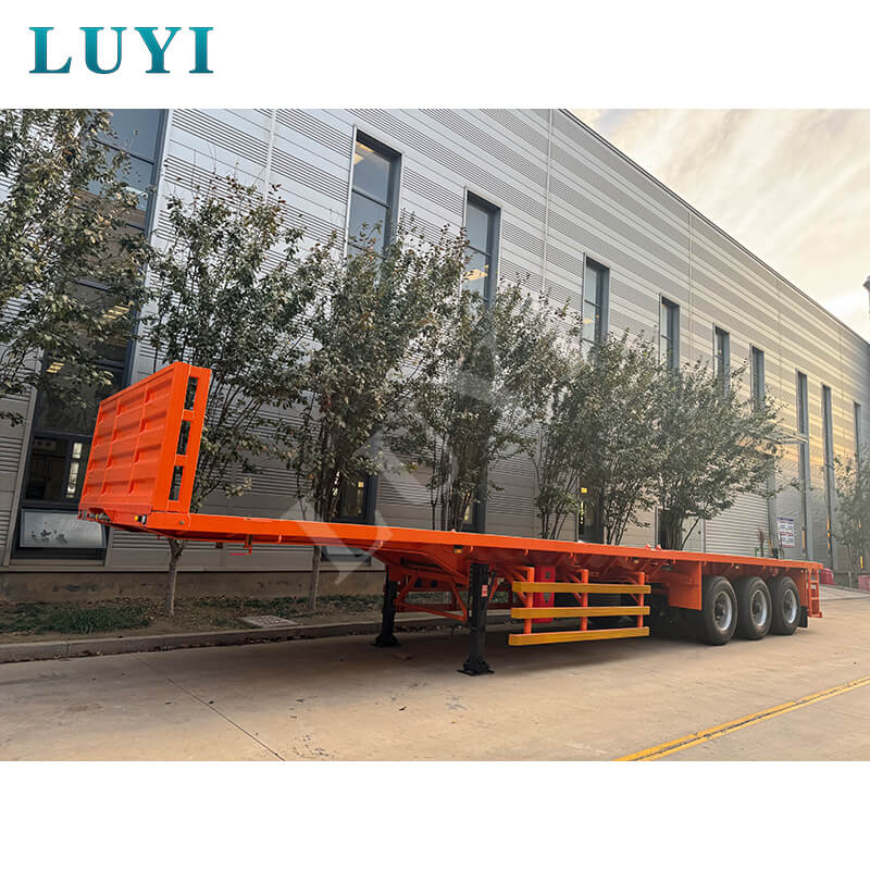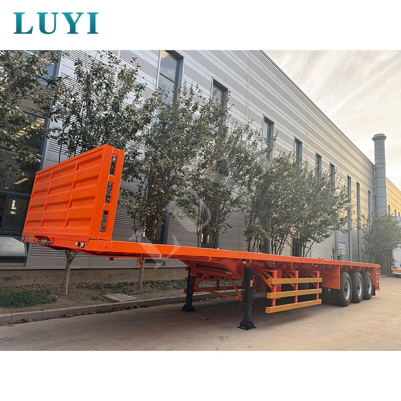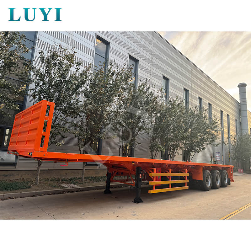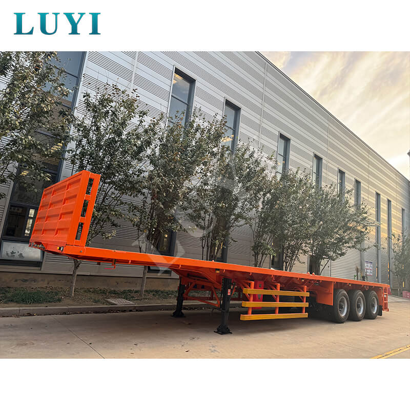 รถกึ่งพ่วงพื้นเรียบแบบบรรทุกหนัก 3 เพลาของ Luyi 60 ตันที่ออกแบบเอง มีต้นกำเนิดจากซานตง ประเทศจีน เป็นเครื่องมือที่ทรงพลังสำหรับการขนส่งตู้คอนเทนเนอร์ที่ผสมผสานความแข็งแกร่งและความยืดหยุ่น น้ำหนักบรรทุกที่มีประสิทธิภาพสูงสุดอยู่ที่ 60 ตัน โดยเน้นไปที่การขนส่งตู้คอนเทนเนอร์ขนาด 40 ฟุตเป็นหลัก เพลาสามารถกำหนดค่าด้วยเพลา 2/3/4 ซึ่งได้รับการสนับสนุนโดยเพลาแบรนด์ที่มีชื่อเสียงสองตัว ได้แก่ Fuwa และ BPW ช่วยให้มั่นใจในการขนส่งที่มีน้ำหนักมากอย่างมั่นคงและเชื่อถือได้