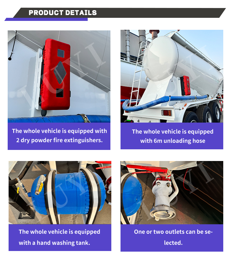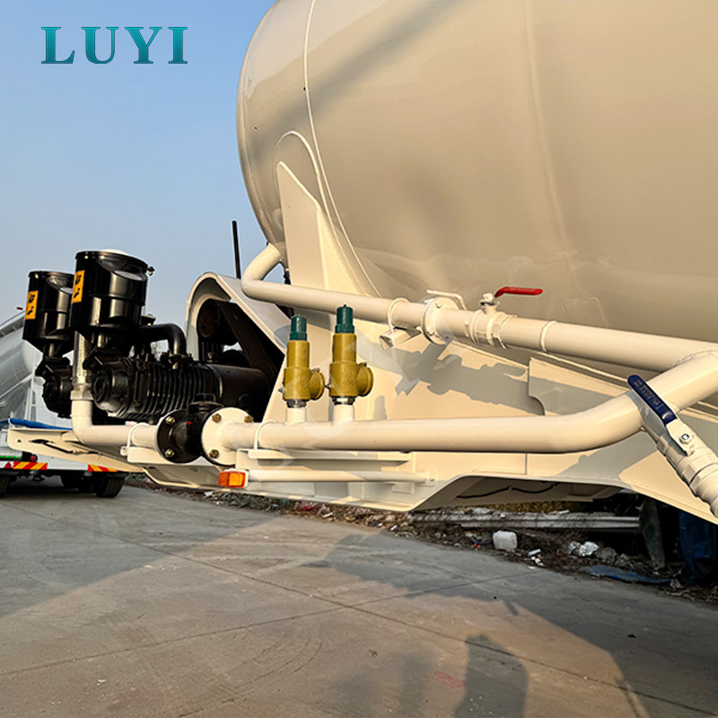 รถกึ่งพ่วงถังผงยี่ห้อ LUYI 3 เพลา 30 ลูกบาศก์ซึ่งมีต้นกำเนิดจากฐานการผลิตคุณภาพสูงในซานตง ประเทศจีน ได้รับการออกแบบมาเพื่อการขนส่งแป้งแห้งเทกองโดยเฉพาะ ยานพาหนะทั้งหมดทำจากเหล็กกล้าคาร์บอนที่มีความแข็งแรงสูง โดยคานหลักใช้เหล็กมาตรฐาน Q345B/ST52-3 ซึ่งผสมผสานความทนทานและความมั่นคงในการรับน้ำหนัก การออกแบบขนาดทางวิทยาศาสตร์ 12000 มม.* 2500 มม. * 3980 มม. เหมาะสำหรับสถานการณ์การขนส่งต่างๆ