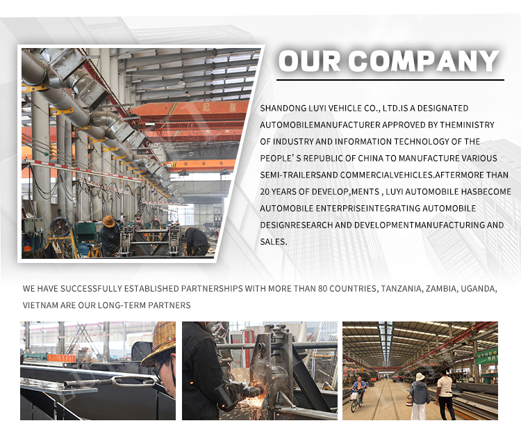มาพร้อมกับส่วนประกอบระดับพรีเมี่ยม โดยมีเพลา Fuwa/BPW 13 ตันที่จับคู่กับระบบกันสะเทือนแบบถุงลม เพื่อให้มั่นใจถึงเสถียรภาพในการขับขี่และการดูดซับแรงกระแทกที่ยอดเยี่ยม ล้อลงจอดสองความเร็ว Jost 28 ตันช่วยให้การยกและลดระดับมีประสิทธิภาพ ลูกค้าสามารถเลือกยางขนาด 315/80R22.5, 12R22.5 และ 11.00R20 เพื่อให้เหมาะกับสภาพถนนที่หลากหลาย ระบบไฟ LED 24V ให้แสงสว่างสดใสโดยสิ้นเปลืองพลังงานต่ำ และสีตัวถังสามารถปรับแต่งให้ตรงตามความต้องการส่วนบุคคลได้ รถกึ่งพ่วงคันนี้ได้รับการสนับสนุนจากคุณภาพที่เชื่อถือได้ของ Luyi และมอบโซลูชันการขนส่งหนักที่เชื่อถือได้สำหรับลูกค้าทั่วโลก