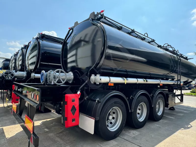 รถพ่วงกึ่งถังน้ำมันเชื้อเพลิงติดตั้งเพลา Luyi-Brand และมีการแขวนลอยเชิงกลพร้อมใบไม้สปริงทำให้เหมาะสำหรับสภาพถนนที่ขรุขระ การตั้งค่านี้ช่วยลดการสั่นสะเทือนได้อย่างมีประสิทธิภาพเพื่อให้มั่นใจถึงความปลอดภัยของสินค้าในระหว่างการขนส่ง