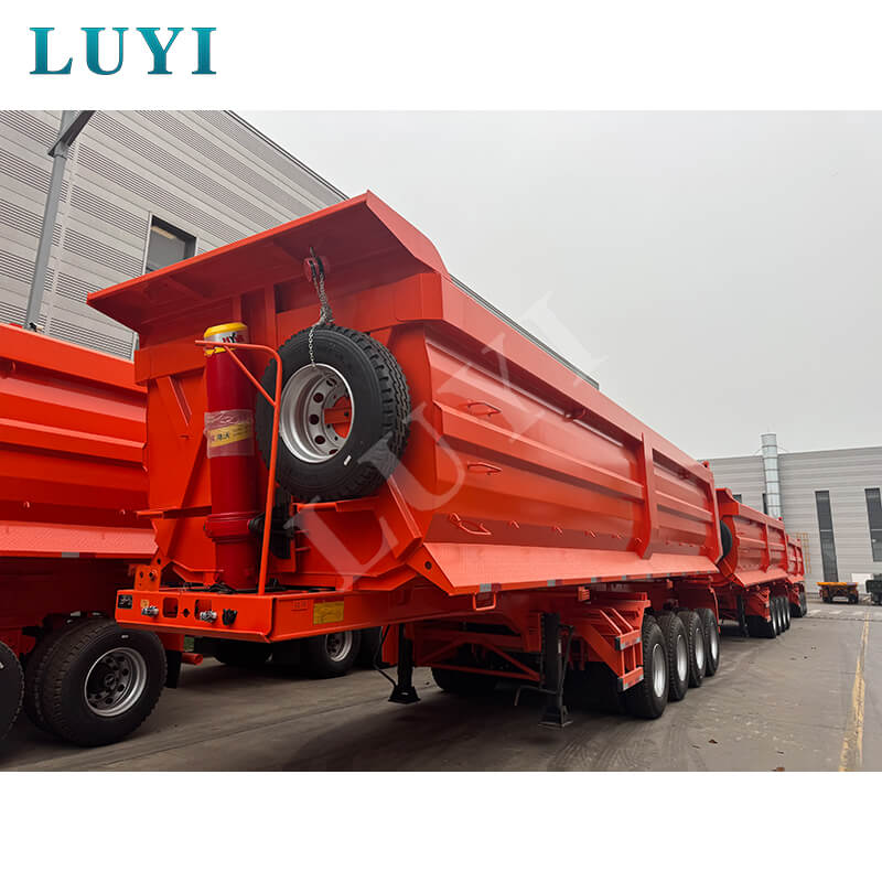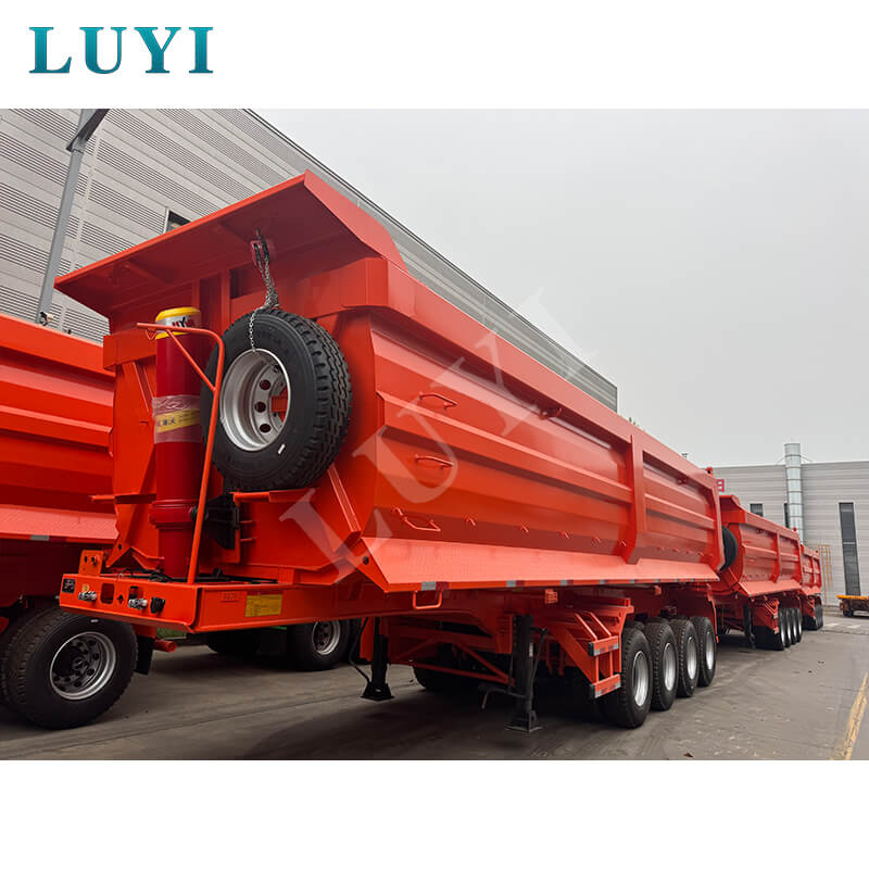 รถกึ่งพ่วงการถ่ายโอนข้อมูลแบบดัมพ์ด้านหลัง Luyi 4 เพลา 100 ตัน U-Type มีต้นกำเนิดจากมณฑลซานตงประเทศจีนเป็นรถกึ่งพ่วงขนถ่ายด้านหลังใหม่ล่าสุดที่ออกแบบมาเป็นพิเศษสำหรับการขนส่งทรายและกรวด ตัวรถพ่วงทำจากเหล็กคุณภาพสูง มีขนาด 9.6×2.5×2 เมตร และปริมาตร 35-60 ลูกบาศก์เมตร ช่วยให้สามารถบรรทุกสินค้าเทกอง เช่น ทรายและกรวด ได้อย่างมีประสิทธิภาพ