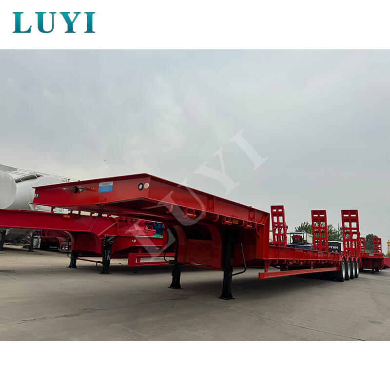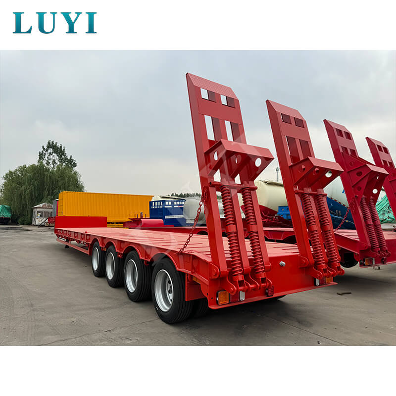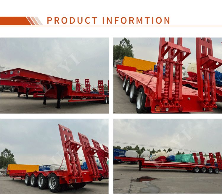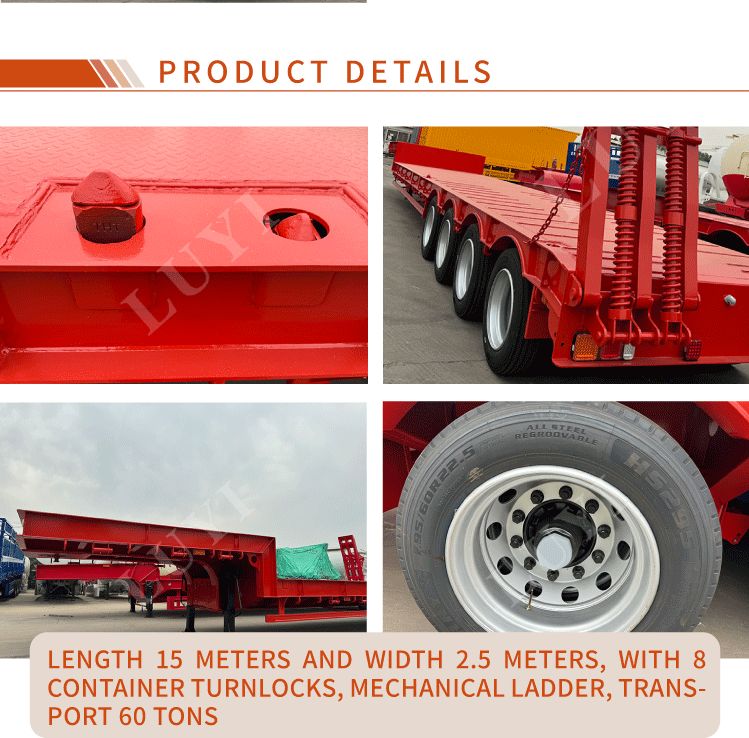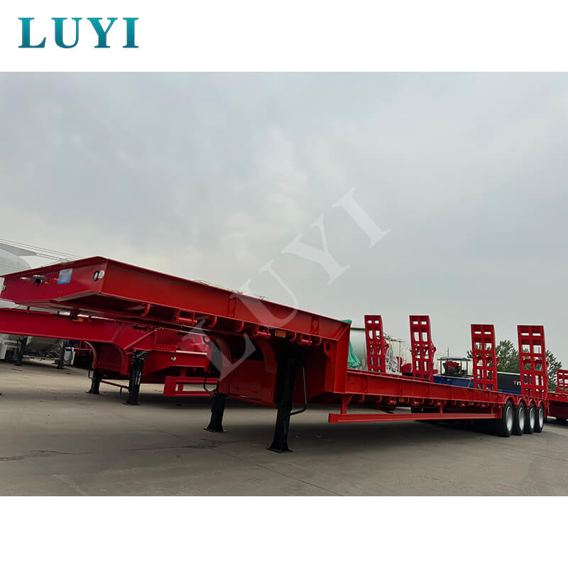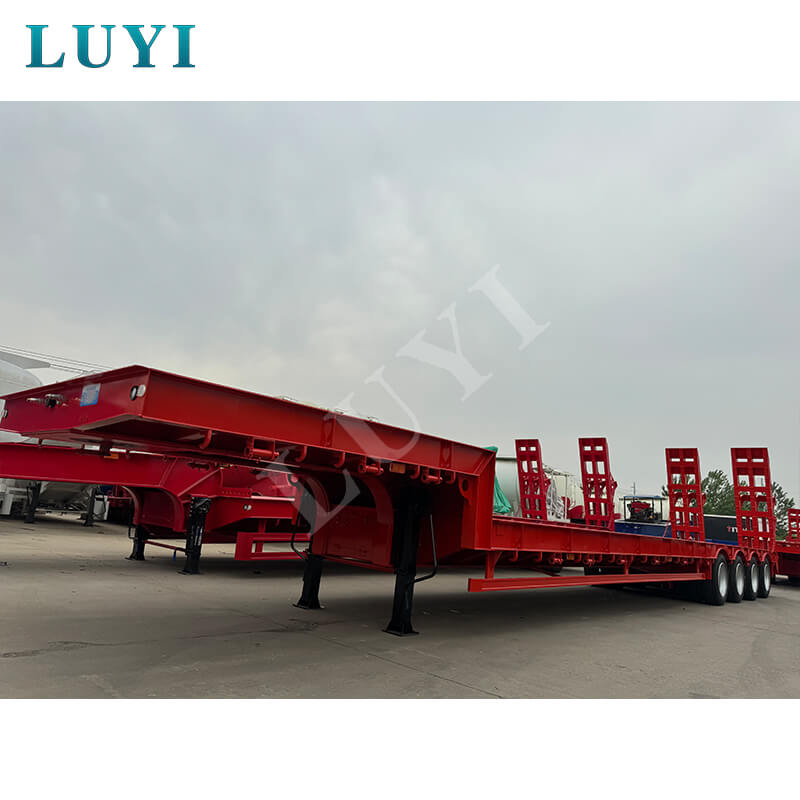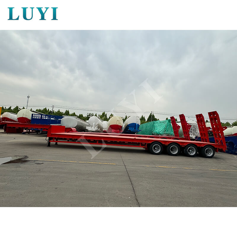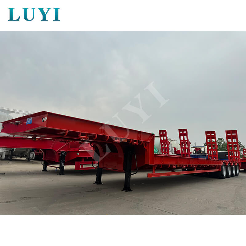 Luyi 4-Axle 60-Ton Gooseneck Lowboy Semi-Trailer ผลิตในมณฑลซานตง ประเทศจีน เป็นรถพ่วงรถบรรทุกสำหรับการขนส่งสินค้าหนักโดยเฉพาะ ตัวรถพ่วงทำจากเหล็กคุณภาพสูงมีโครงสร้างแข็งแรงทนทาน น้ำหนักบรรทุกที่มีประสิทธิภาพสูงสุดไม่เพียงแต่เกิน 30,000 กิโลกรัม แต่ยังสูงถึง 100 ตัน บรรทุกสินค้าหนักต่างๆ ได้อย่างง่ายดาย และตอบสนองความต้องการในการขนส่งที่มีความหนาแน่นสูง