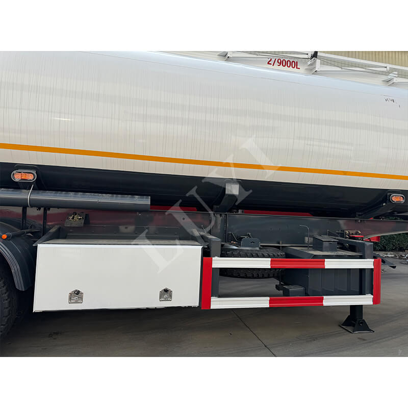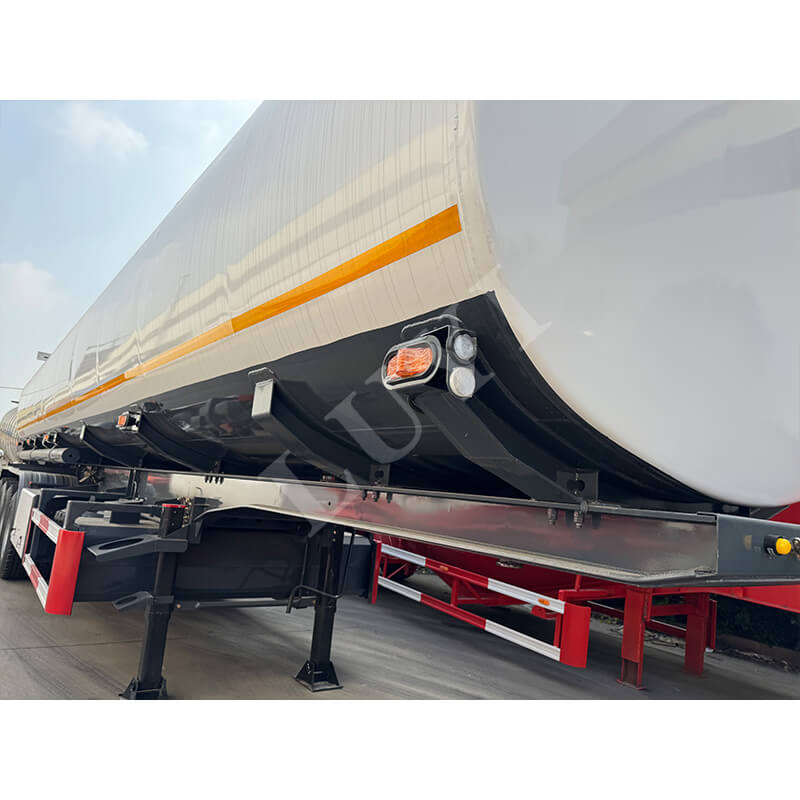 ติดตั้งการออกแบบ 4 เพลาของ Luyi และจับคู่กับยาง 12R22.5 รถกึ่งพ่วงช่วยให้มั่นใจในเสถียรภาพในการขับขี่ที่แข็งแกร่ง ระบบกันสะเทือนมีให้เลือก 2 แบบ คือ ระบบกันสะเทือนแบบกลไกและระบบกันสะเทือนแบบถุงลม ซึ่งสามารถรองรับสภาพถนนได้หลากหลาย แขนค้ำเป็นข้อกำหนดมาตรฐาน 28 ตัน และหมุดหลักมีจำหน่ายในตัวเลือกขนาด 2 นิ้ว (50 มม.) หรือ 3.5 นิ้ว (90 มม.) ให้ความสามารถในการดัดแปลงที่ยอดเยี่ยม สีตัวถังสนับสนุนการปรับแต่งของลูกค้าเพื่อให้เข้ากับภาพลักษณ์ของแบรนด์ที่แตกต่างกัน ทำให้มั่นใจได้ถึงการขนส่งเชื้อเพลิงที่มีประสิทธิภาพและปลอดภัยอย่างเต็มที่ และให้การสนับสนุนอุปกรณ์ที่เชื่อถือได้สำหรับการดำเนินงานด้านลอจิสติกส์