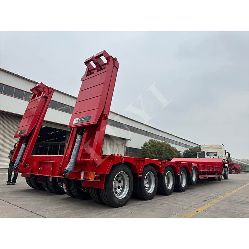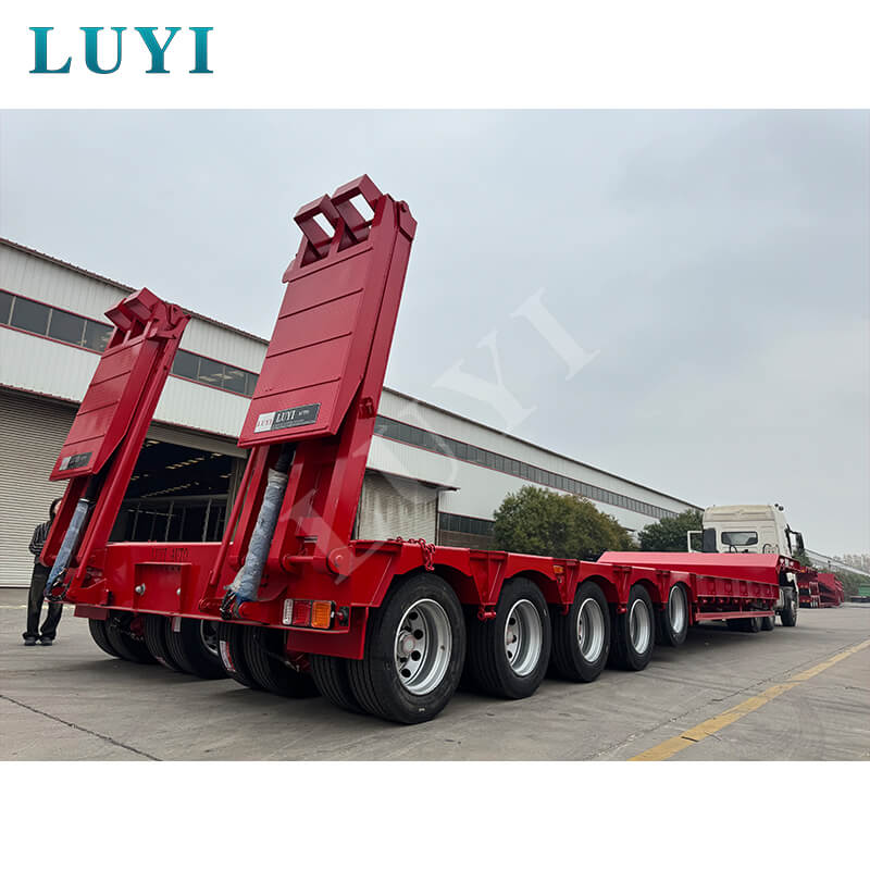 LUYI 5-Axle 180-Ton 5-Line 10-Axle Lowboy Trailer ซึ่งเดิมผลิตในมณฑลซานตง ประเทศจีน เป็นรถกึ่งพ่วงใหม่ล่าสุดที่ออกแบบมาโดยเฉพาะสำหรับการใช้งานรถพ่วงรถบรรทุก ตอบสนองความต้องการด้านการขนส่งงานหนักด้วยความสามารถในการรับน้ำหนักสูงและความมั่นคงที่แข็งแกร่ง