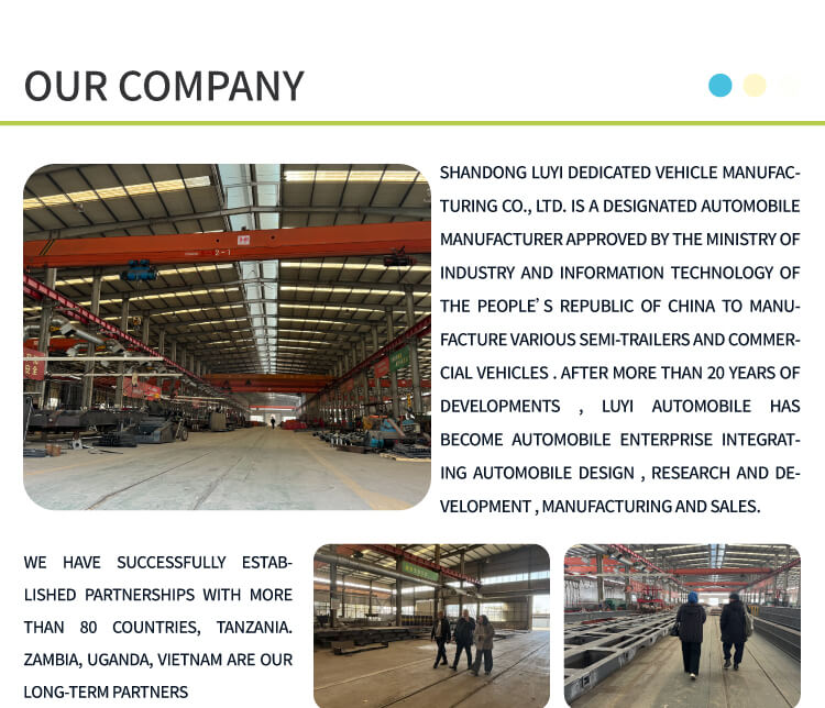 รถกึ่งพ่วงสร้างจากเหล็กกล้าที่ทนทานทั้งหมด มีขนาด 17000×3000×1500 มม. ช่วยให้มั่นใจได้ถึงการรองรับโครงสร้างที่แข็งแกร่ง มีตัวเลือกระบบกันสะเทือนที่ยืดหยุ่น—แบบลมหรือแหนบ—เพื่อปรับให้เข้ากับสภาพถนนที่แตกต่างกัน ในขณะที่การออกแบบคอห่านแบบถอดได้ช่วยลดความยุ่งยากในการเชื่อมต่อกับรถแทรกเตอร์และการบรรทุกสินค้า บันไดมีทั้งแบบไฮดรอลิกหรือแบบแมนนวลเพื่อให้เข้าถึงเตียงได้ง่าย และล้อลงจอดขนาด 28 ตันรับประกันการจอดรถที่มั่นคงระหว่างการขนถ่าย สีตัวถังสามารถปรับแต่งได้อย่างเต็มที่เพื่อตอบสนองความต้องการของแบรนด์ และรวมถึงการรับประกัน 6 ปี ซึ่งให้ความน่าเชื่อถือในระยะยาวสำหรับผู้ใช้ในอุตสาหกรรมการขนส่งหนัก