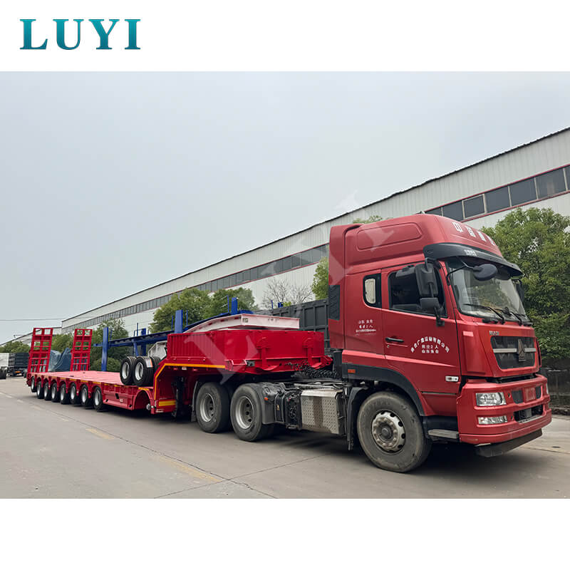 LUYI 8-Axle 120T Air Suspension Low-Bed Semi-Trailer มีต้นกำเนิดจากมณฑลซานตง ประเทศจีน เป็นรถกึ่งพ่วงประสิทธิภาพสูงออกแบบมาเป็นพิเศษสำหรับการขนส่งอุปกรณ์งานหนัก ทำจากเหล็กคุณภาพสูง มีขนาด 22000×3000×1600 มม. พร้อมน้ำหนักบรรทุกสูงสุด 100T ตอบสนองความต้องการในการขนส่งของเครื่องจักรกลหนักต่างๆ ได้อย่างง่ายดาย