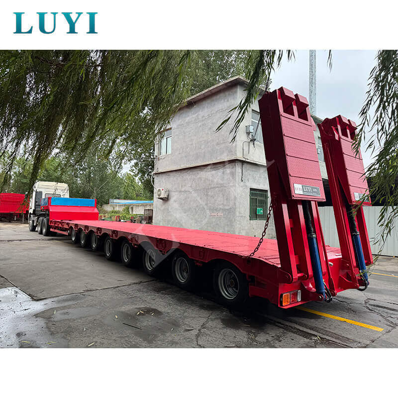รถพ่วงพื้นต่ำคอห่านสำหรับงานหนัก 8 เพลาโดย Luyi Vehicle ซึ่งมีต้นกำเนิดจากมณฑลซานตงประเทศจีนเป็นรถกึ่งพ่วงที่เชี่ยวชาญในการขนส่งเครื่องจักรกลหนัก สร้างขึ้นด้วยเหล็กคุณภาพสูง โดยมีขนาด 17000×3000×1800 มม. โดยมีความสามารถในการรับน้ำหนักตั้งแต่ 60 ถึง 200 ตัน และน้ำหนักบรรทุกที่มีประสิทธิภาพสูงสุด 200 ตัน ตอบสนองความต้องการด้านการขนส่งสำหรับงานหนักได้อย่างเต็มที่