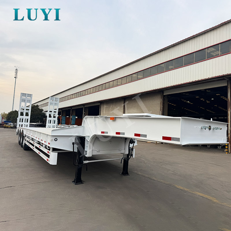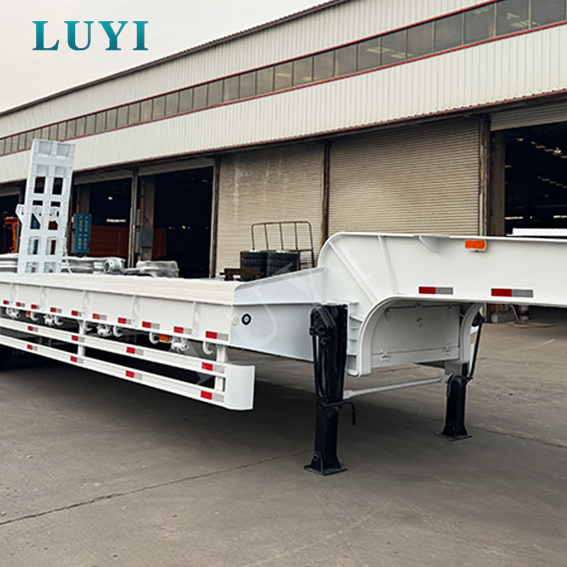รถกึ่งพ่วงพื้นต่ำ LUYI 3 เพลา 60 ตันมีต้นกำเนิดจากซานตง ประเทศจีน เป็นตัวเลือกที่เชื่อถือได้สำหรับการขนส่งอุปกรณ์งานหนัก! รถพ่วงผลิตจากเหล็กกล้าคาร์บอนความแข็งแรงสูง แข็งแรงทนทาน และสามารถรับน้ำหนักได้ดีเยี่ยม โดยมีน้ำหนักบรรทุกสูงสุด 60 ตัน เหมาะอย่างยิ่งสำหรับการขนส่งสินค้าขนาดใหญ่ทางไกล เช่น เครื่องจักรทางวิศวกรรมและเครื่องจักรกลหนัก