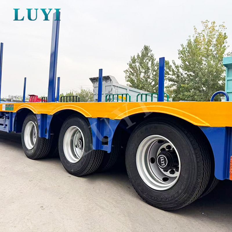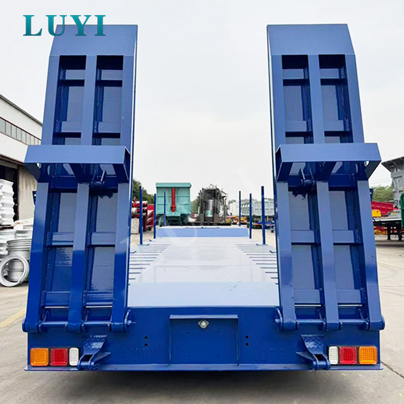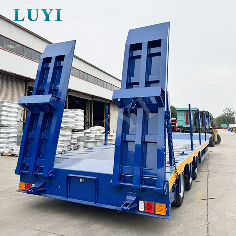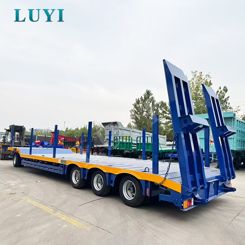 LUYI 3 Axle Lowbed Truck Semi Trailer เป็นยานพาหนะขนส่งประสิทธิภาพสูงที่มีต้นกำเนิดจากมณฑลซานตง ประเทศจีน ออกแบบมาสำหรับการขนส่งสินค้าหนักเช่นรถขุด