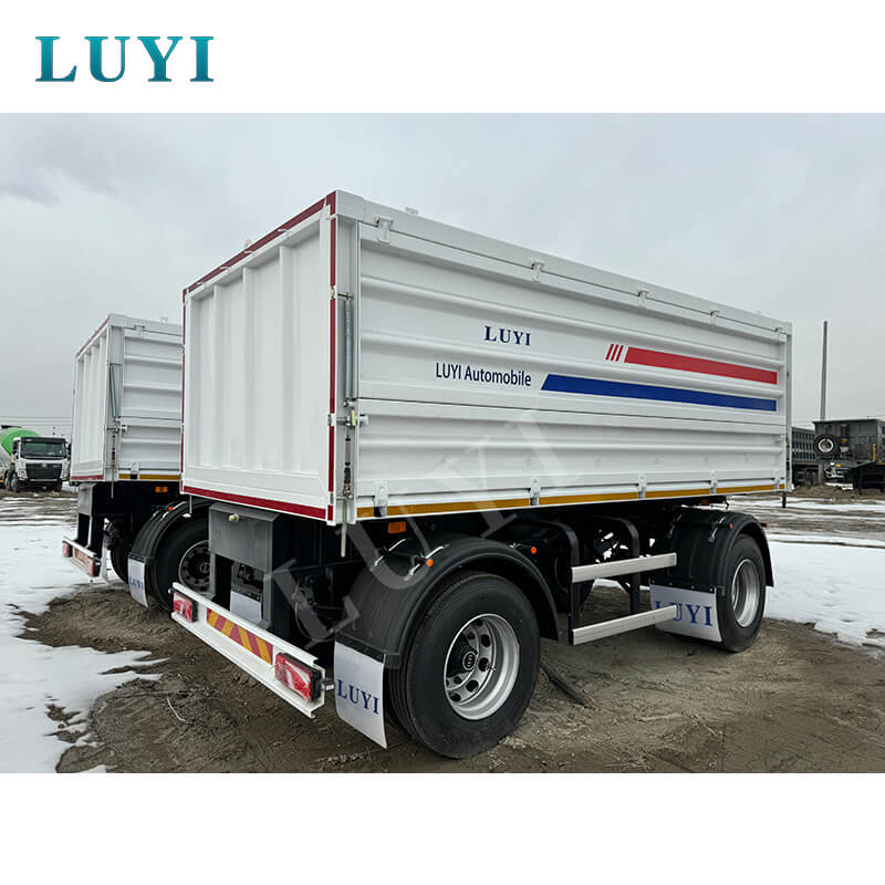 มีต้นกำเนิดจากมณฑลซานตง ประเทศจีน รถกึ่งพ่วงบรรทุกสินค้า Luyi Full Drawbar Cargo Box Dump Semi-Trailer เป็นรถกึ่งพ่วงบรรทุกสินค้าคุณภาพสูงที่ออกแบบมาเป็นพิเศษสำหรับการขนส่งทราย กรวด และถ่านหิน ตัวรถพ่วงทำจากเหล็กคุณภาพสูง มีขนาด 10,000×2500×3600 มม. มีโครงสร้างที่แข็งแรงและทนทาน และน้ำหนักบรรทุกที่มีประสิทธิภาพสูงสุดถึง 50 ตัน ทำให้สามารถบรรทุกสินค้าเทกองได้อย่างมีประสิทธิภาพ