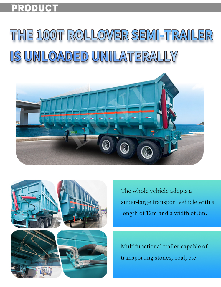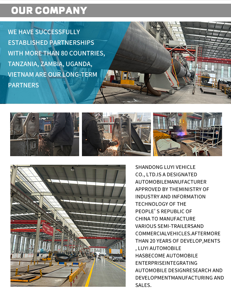 รถกึ่งพ่วงดัมพ์แบบ 3 เพลายี่ห้อ LUYI ซึ่งมีต้นกำเนิดจากการผลิตคุณภาพสูงในซานตง ประเทศจีน เป็นอุปกรณ์ขนถ่ายที่มีประสิทธิภาพซึ่งออกแบบมาเป็นพิเศษสำหรับการขนส่งสินค้าจำนวนมาก ผลิตภัณฑ์ทำจากเหล็กความแข็งแรงสูงผสมผสานความทนทานและความมั่นคงในการรับน้ำหนัก พิกัดน้ำหนักบรรทุกมีตั้งแต่ 50 ถึง 60 ตัน โดยมีน้ำหนักบรรทุกสูงสุดที่มีประสิทธิภาพสูงสุดถึง 60 ตัน ตอบสนองความต้องการในการขนส่งทางไกลของสินค้าเทกองต่างๆ ได้อย่างเต็มที่