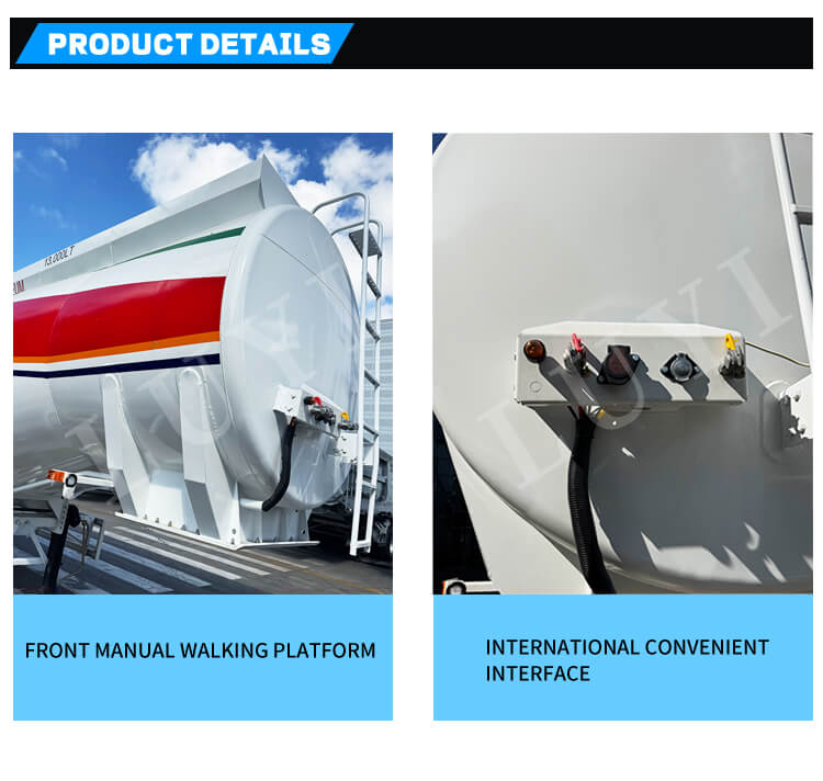ตัวอย่างมีโครงสร้างที่มั่นคงและเชื่อถือได้ ประกอบด้วยเพลาขนาด 13/16 ตันจากแบรนด์ต่างๆ เช่น Fuwa, BPW หรือ BERKLEY และมีตัวเลือกระบบกันสะเทือนแบบกลไกหรือแบบลม เข้ากันได้กับข้อกำหนดยางต่างๆ รวมถึง 11.00r20, 12r22.5 และ 315/385 ช่วยให้มั่นใจในการขับขี่ที่มั่นคงและการปรับตัวให้เข้ากับสภาพถนนที่แตกต่างกัน มันมาพร้อมกับล้อลงจอดมาตรฐาน 28 ตันและหมุดคิง 50#/90# เพื่อการทำงานที่สะดวกและปลอดภัย ผลิตภัณฑ์นี้รองรับสีตัวถังแบบกำหนดเอง ผสมผสานการใช้งานจริงและการปรับแต่งเฉพาะบุคคล เพื่อมอบโซลูชันระดับมืออาชีพที่มั่นคงและมีประสิทธิภาพสำหรับการขนส่งน้ำมัน