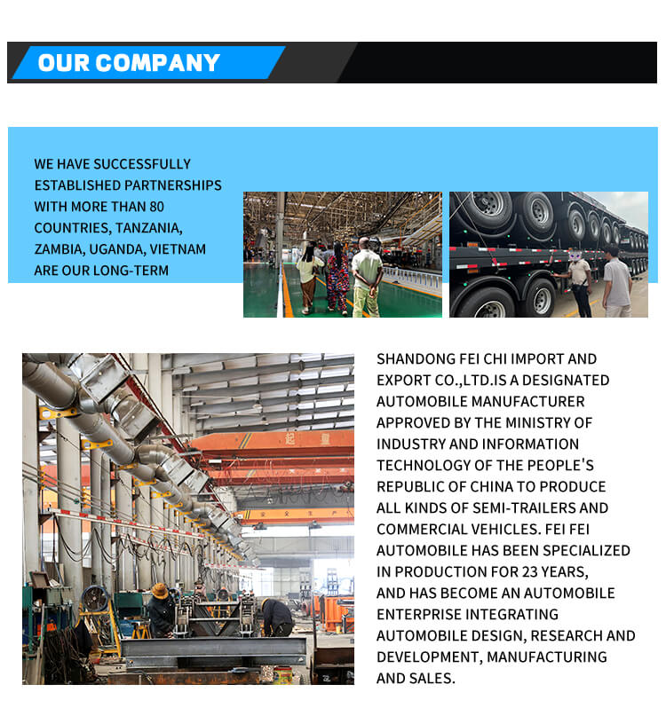 โรงงานของเราไม่เพียงแต่ผลิตรถแทรกเตอร์เท่านั้น แต่ยังรวมถึงรถดัมพ์, รถสปริงเกอร์, รถเครน, รถผสม, รถดั๊ม, รถพ่วงถัง, รถพ่วงพื้นต่ำ, รถพ่วงกำจัดฝุ่น ฯลฯ โรงงานของเรามีขนาดใหญ่และสามารถปรับแต่งผลิตภัณฑ์ที่แตกต่างกันตามความต้องการของลูกค้าที่แตกต่างกัน
