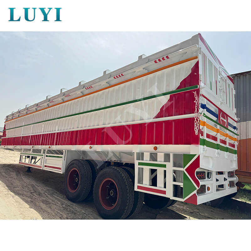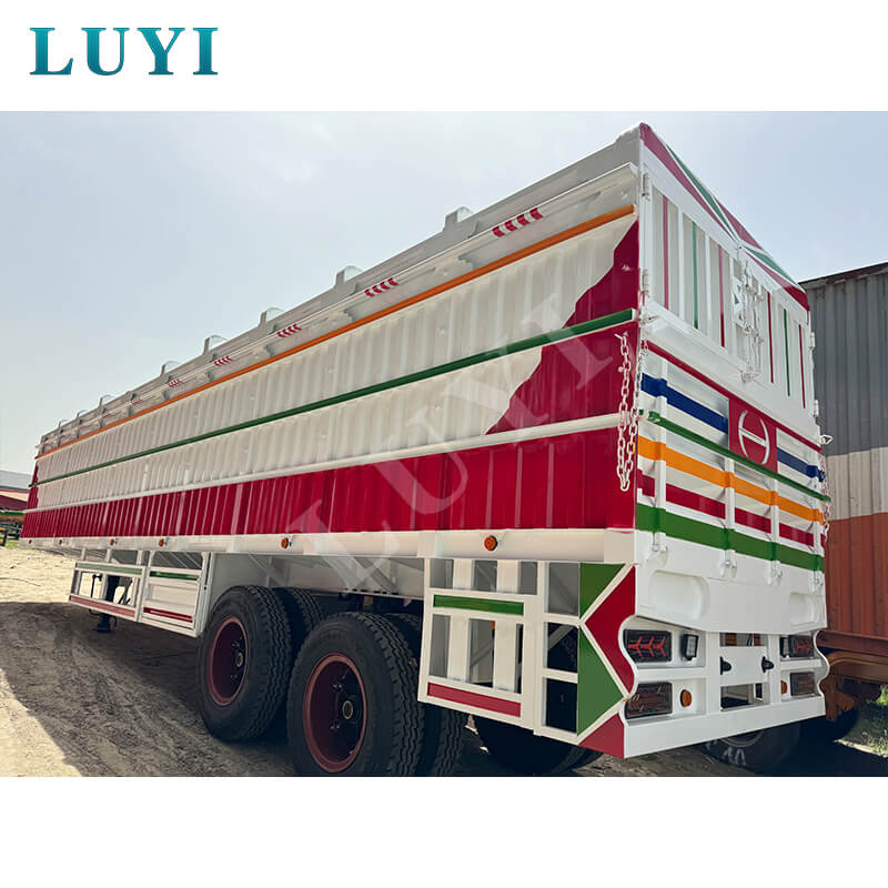 Luyi 2-Axle 100-Ton Stake Semi-Trailer รถพ่วงบรรทุกสินค้าใหม่ล่าสุดที่มีต้นกำเนิดจากมณฑลซานตง ประเทศจีน ได้รับการออกแบบมาเป็นพิเศษสำหรับการขนส่งหนักที่มีประสิทธิภาพ ตัวเครื่องทำจากเหล็กที่มีความแข็งแรงสูง ทนทานต่อแรงกดและความทนทานเป็นเลิศ ด้วยน้ำหนักบรรทุกที่มีประสิทธิภาพสูงสุด 60 ตัน ทำให้สามารถขนส่งสินค้าเทกองและตู้คอนเทนเนอร์ได้อย่างยืดหยุ่น ปรับให้เข้ากับสถานการณ์การขนส่งสินค้าต่างๆ