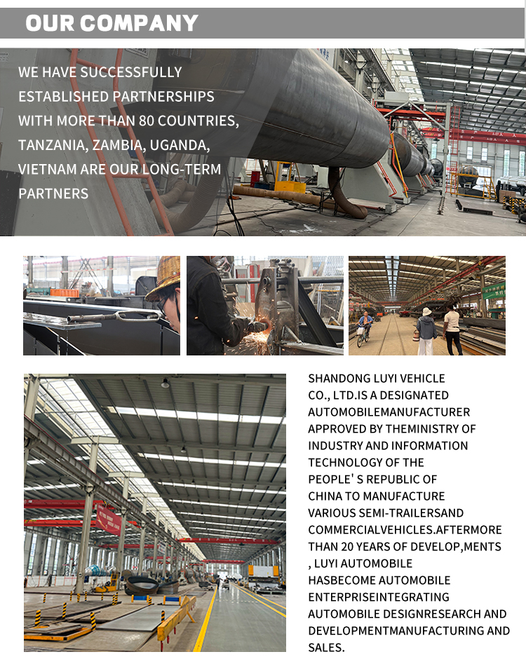 รถกึ่งพ่วงดัมพ์ 3 เพลาสีขาวยี่ห้อ LUYI ซึ่งมีต้นกำเนิดจากการผลิตคุณภาพสูงในซานตง ประเทศจีน เป็นรถพ่วงรถบรรทุกที่มีประสิทธิภาพซึ่งออกแบบมาเป็นพิเศษสำหรับการขนส่งหนัก ผลิตภัณฑ์ทำจากเหล็กความแข็งแรงสูงมีโครงสร้างที่มั่นคงและทนทาน มีขนาด 1300 มม. × 2500 มม. × 4000 มม. และความสามารถในการรับน้ำหนักสูงสุด 100 ตัน ตอบสนองความต้องการในการขนส่งสินค้าหนักต่างๆ ได้อย่างง่ายดาย