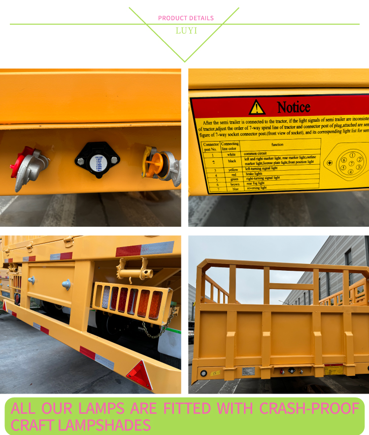 รถกึ่งพ่วงรุ่นนี้นำเสนอสีที่ปรับแต่งได้เพื่อให้ตรงตามความต้องการของแต่ละบุคคล และยังรองรับการปรับเพลา (2/3/4 เพลา) สำหรับสถานการณ์การขนส่งที่หลากหลาย ด้วยการสนับสนุนจากการควบคุมคุณภาพอย่างเข้มงวดและบริการหลังการขายอย่างมืออาชีพของ LUYI บริษัทจึงให้การสนับสนุนด้านการขนส่งที่ทนทาน มีประสิทธิภาพ และหลากหลายสำหรับลูกค้าทั่วโลก กลายเป็นพันธมิตรที่เชื่อถือได้ในด้านโลจิสติกส์ข้ามพรมแดน