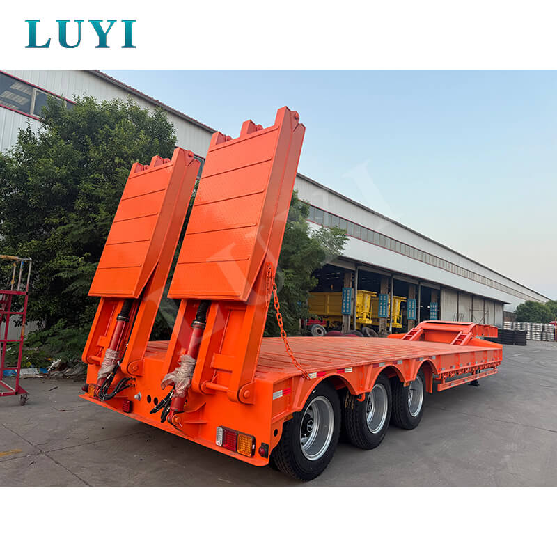 LUYI 3-Axle 60-Ton Detachable Gooseneck Lowbed Semi-Trailer ผลิตในซานตง ประเทศจีน เป็นรถพ่วงขนส่งสินค้าระดับมืออาชีพ ตัวเครื่องทำจากเหล็กความแข็งแรงสูง โดยมีขนาด 1700030001500 มม. โครงสร้างมีความทนทานและพื้นที่เพียงพอ ช่วยให้บรรทุกสินค้าหนักได้อย่างมั่นคง และปรับให้เข้ากับการดำเนินการลากจูงของรถบรรทุกต่างๆ