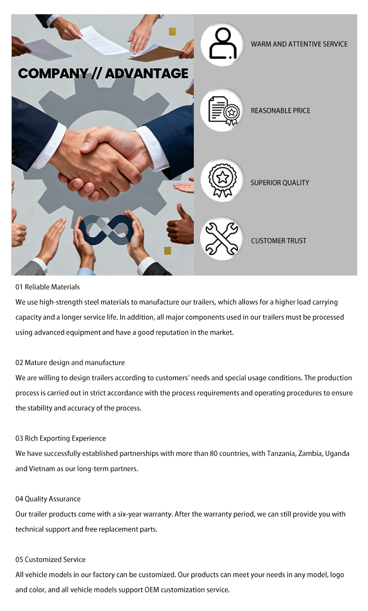 รถบรรทุกมาพร้อมกับระบบปรับอากาศแบบแมนนวลและกล้องมองหลังเพื่อให้มั่นใจถึงความสะดวกสบายและความปลอดภัยขั้นพื้นฐานในการขับขี่ เราให้บริการหลังการขายที่ครอบคลุม รวมถึงการติดตั้งนอกสถานที่ การสนับสนุนด้านเทคนิคผ่านวิดีโอ และศูนย์บริการทางโทรศัพท์ในต่างประเทศ เพื่อให้คุณได้รับประสบการณ์ในการซื้อและใช้งานโดยไร้กังวล