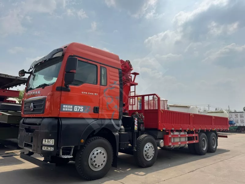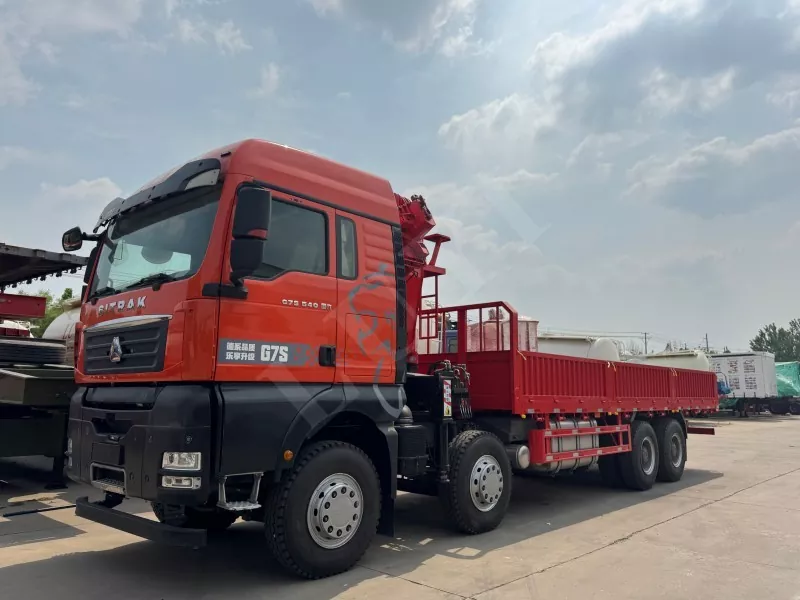 Shandeka G7S 540hp National VI Chassis, Sinotruk Gearbox, อัตราส่วนความเร็ว 3.7, การกำหนดค่าของแบบจำลองนี้ช่วยให้มั่นใจได้ว่าการเปลี่ยนประสิทธิภาพที่ราบรื่นและประสิทธิภาพการส่งผ่านที่มีประสิทธิภาพความยาวของร่างกายคือ 6.925 เมตรความกว้าง 2.496 เมตร การเพิ่มรถบรรทุกแบนและเครนแขนพับให้ความสามารถในการยกที่ทรงพลังและเหมาะสำหรับหลายสาขาเช่นการก่อสร้างและโลจิสติกส์