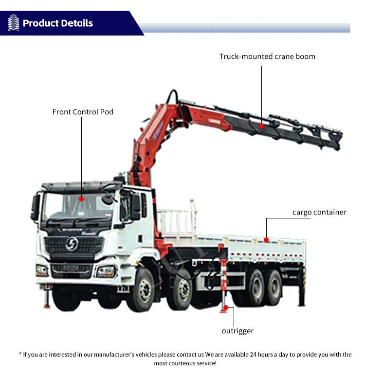 รถบรรทุกติดเครน Shacman 8*4 พร้อมแขนพับมีแรงยกสูงสุด 28 ตัน ความสูงในการยกสูงสุด 23.5 ม. และระยะการทำงาน 20.8 ม. ตอบสนองความต้องการในการยกที่หลากหลายในสถานการณ์การก่อสร้างได้อย่างสมบูรณ์แบบ รถบรรทุกคันนี้มีน้ำหนักรวม 2,035 กก. มีโครงสร้างที่กะทัดรัดและยืดหยุ่น และการออกแบบแขนพับช่วยประหยัดพื้นที่ในการคมนาคมและที่จอดรถได้อย่างมาก
