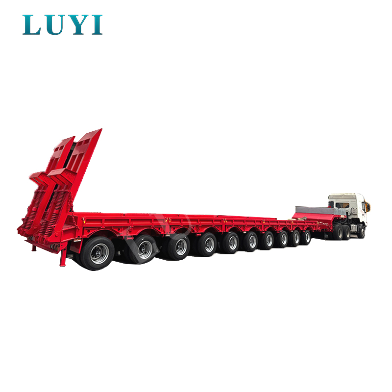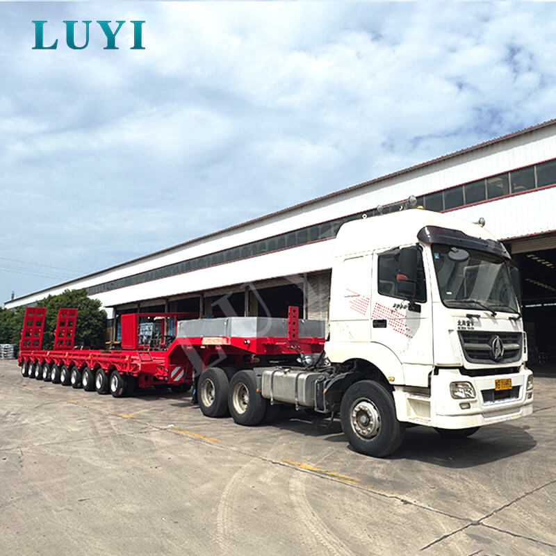 รถกึ่งพ่วงพื้นต่ำขนาด 10 เพลา 80-100 ตันจาก LUYI ซึ่งมีต้นกำเนิดในซานตง ประเทศจีน เป็นตัวเลือกที่ยอดเยี่ยมสำหรับการขนส่งสินค้าหนัก สร้างด้วยเหล็กคุณภาพสูง โดยมีสองขนาดให้เลือก: 1780030001500 มม. และ 1800030001500 มม. โดยมีความสามารถในการรับน้ำหนักสูงสุด 100 ตัน และการรับน้ำหนักปกติ 80 ตัน ซึ่งมีความสามารถในการรับน้ำหนักเป็นพิเศษ