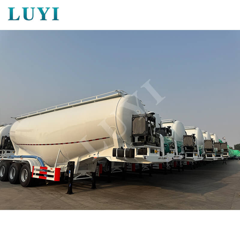 รถพ่วงใช้โครงแบบ 3 เพลาและระบบกันสะเทือนแบบกลไก จับคู่กับยางเสริมตามข้อกำหนด 11.00r20, 12r22.5, 315 และ 385 เพื่อให้มั่นใจถึงเสถียรภาพในการขับขี่ที่ยอดเยี่ยม มีขารองรับงานหนัก 28 ตัน และระบบเบรกแบบสองแถว ให้การรองรับที่มั่นคงและประสิทธิภาพการเบรกที่เชื่อถือได้ หมุดดึงเลือกข้อกำหนด JOST 2.0 นิ้ว (50 มม.) หรือ 3.5 นิ้ว (90 มม.) ที่ให้ความสามารถในการปรับการเชื่อมต่อที่แข็งแกร่ง ลูกค้าสามารถปรับแต่งสีตัวถังได้ ด้วยงานฝีมือที่แข็งแกร่งและการออกแบบที่ใช้งานได้จริง จึงเป็นโซลูชั่นพิเศษที่ปลอดภัยและมีประสิทธิภาพสำหรับการขนส่งปูนซีเมนต์จำนวนมาก