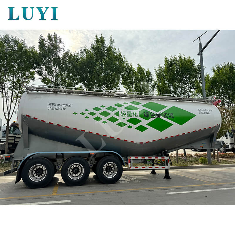 รถกึ่งพ่วงถังซีเมนต์แบบ 3 เพลาขนาด 50 ลูกบาศก์เมตรเป็นอุปกรณ์กึ่งพ่วงสำหรับงานหนักที่ออกแบบมาเป็นพิเศษสำหรับการขนส่งปูนซีเมนต์จำนวนมาก โดยมุ่งเน้นไปที่ความต้องการการขนส่งที่มีประสิทธิภาพของโครงสร้างพื้นฐาน สถานีผสม และสถานการณ์อื่นๆ ถังเหล็กคาร์บอนความจุขนาดใหญ่ 50 ลูกบาศก์เมตรสามารถบรรทุกปูนซีเมนต์ปริมาณเพียงพอในการเดินทางครั้งเดียว ช่วยลดความถี่ในการขนส่งไป-กลับ ด้วยการออกแบบถังแบบปิด จึงสามารถแยกความชื้นและฝุ่นได้อย่างมีประสิทธิภาพ ป้องกันปูนซีเมนต์ไม่ให้ชื้นและจับตัวเป็นก้อนหรือหกรั่วไหลตลอดทาง และรับประกันความสะอาดของวัสดุและการปกป้องสิ่งแวดล้อมในการขนส่ง