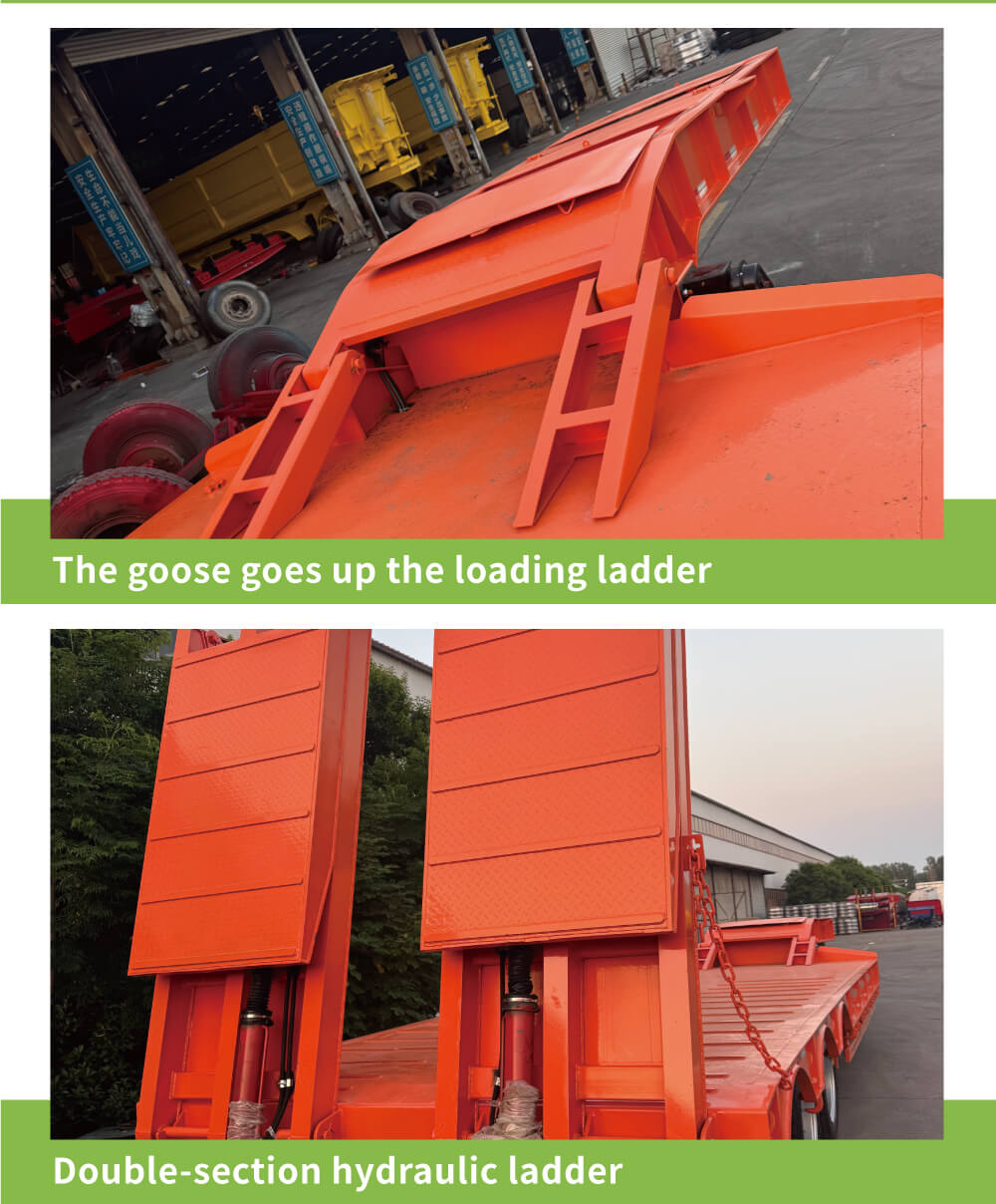 รถพ่วงมีการออกแบบแบบ 3 เพลา จับคู่กับระบบกันสะเทือนแบบอากาศหรือแหนบ ซึ่งให้เสถียรภาพในการขับขี่ที่ดีเยี่ยมและดูดซับแรงกระแทก เพื่อลดความเสียหายจากการกระแทกต่อสินค้าระหว่างการขนส่ง มาพร้อมกับล้อลงจอดขนาด 28 ตันเพื่อการรองรับที่มั่นคงและเชื่อถือได้ บันไดมีสองทางเลือก: แบบไฮดรอลิกหรือแบบแมนนวล อำนวยความสะดวกในการขนถ่ายสินค้า ผลิตภัณฑ์นี้มีการรับประกัน 6 ปี และรองรับสีตัวถังที่ปรับแต่งได้ตามความต้องการของลูกค้า ผสมผสานการใช้งานจริงและการปรับแต่งเฉพาะบุคคล เพื่อตอบสนองความต้องการระดับมืออาชีพในสถานการณ์การขนส่งสินค้าที่แตกต่างกัน